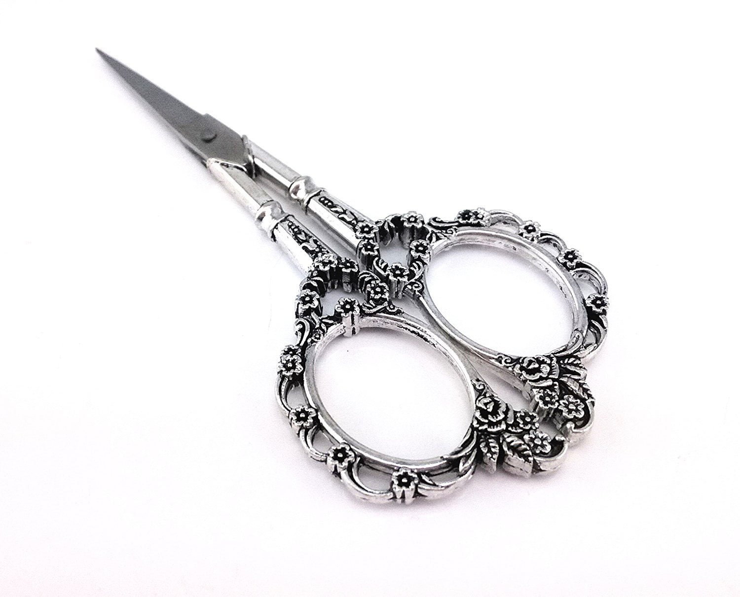 Pretty ornate premium quality stainless steel embroidery scissors. These lovely scissors are 4.5 inches in length, they are perfect for embroidery, cross stitching, sewing or to have in your knitting and crocheting accessories.