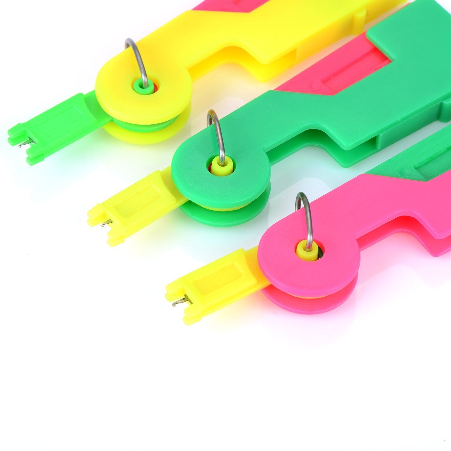 - Needle threader set: these thread guide devices are made of plastic, can help you thread the needle easily; With a ring, can attach to keys; Colors are in random delivery