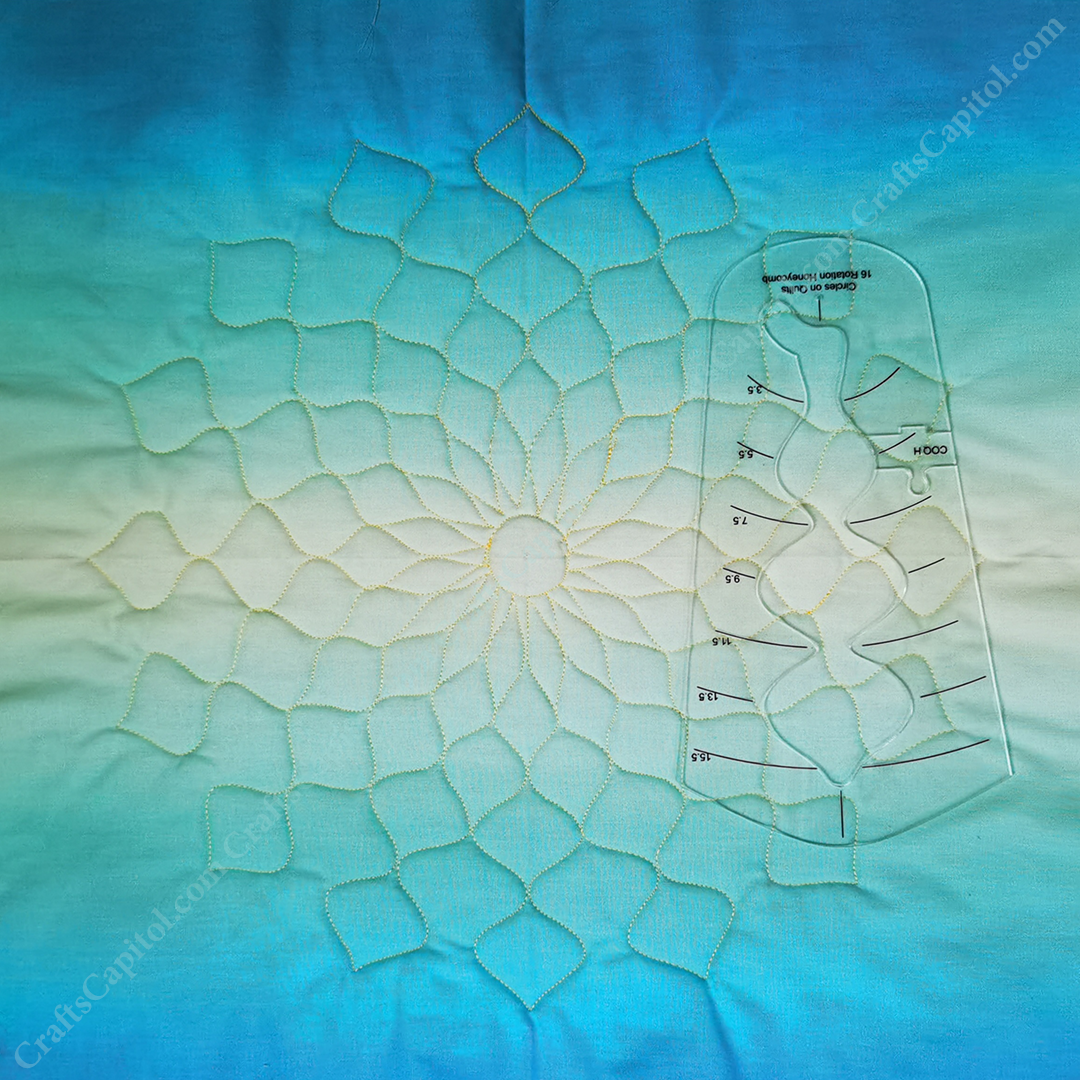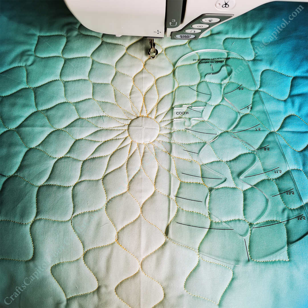 The Circle Easy Template is designed to work in a circular rotation around the center of a quilting block to create an intricate and flowing shape. As many of the templates, the Circle Easy template works with a rotating pin that centers it and allows you to easily keep your design on track.