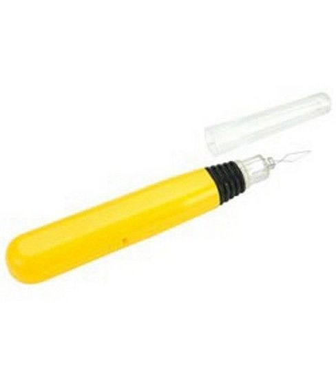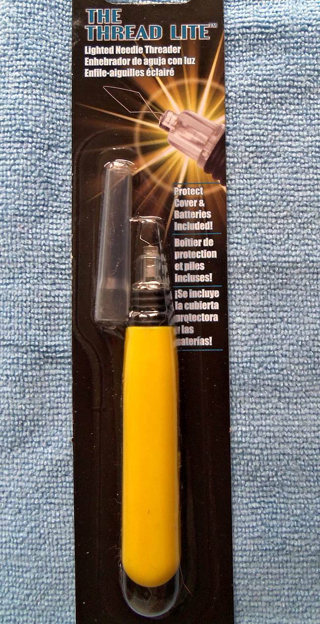 Thread needles quickly and easily with the Lighted Needle Threader. Aiding the eyes, the new LED needle threader features a bright LED light that activates when threader slides out of the case. This handy tool is retractable to keep threader wire protected when not in use. Other features include finger grips to provide stability and comfort, a built-in thread cutter, and a lanyard hole for inserting cord or string to keep it close by.