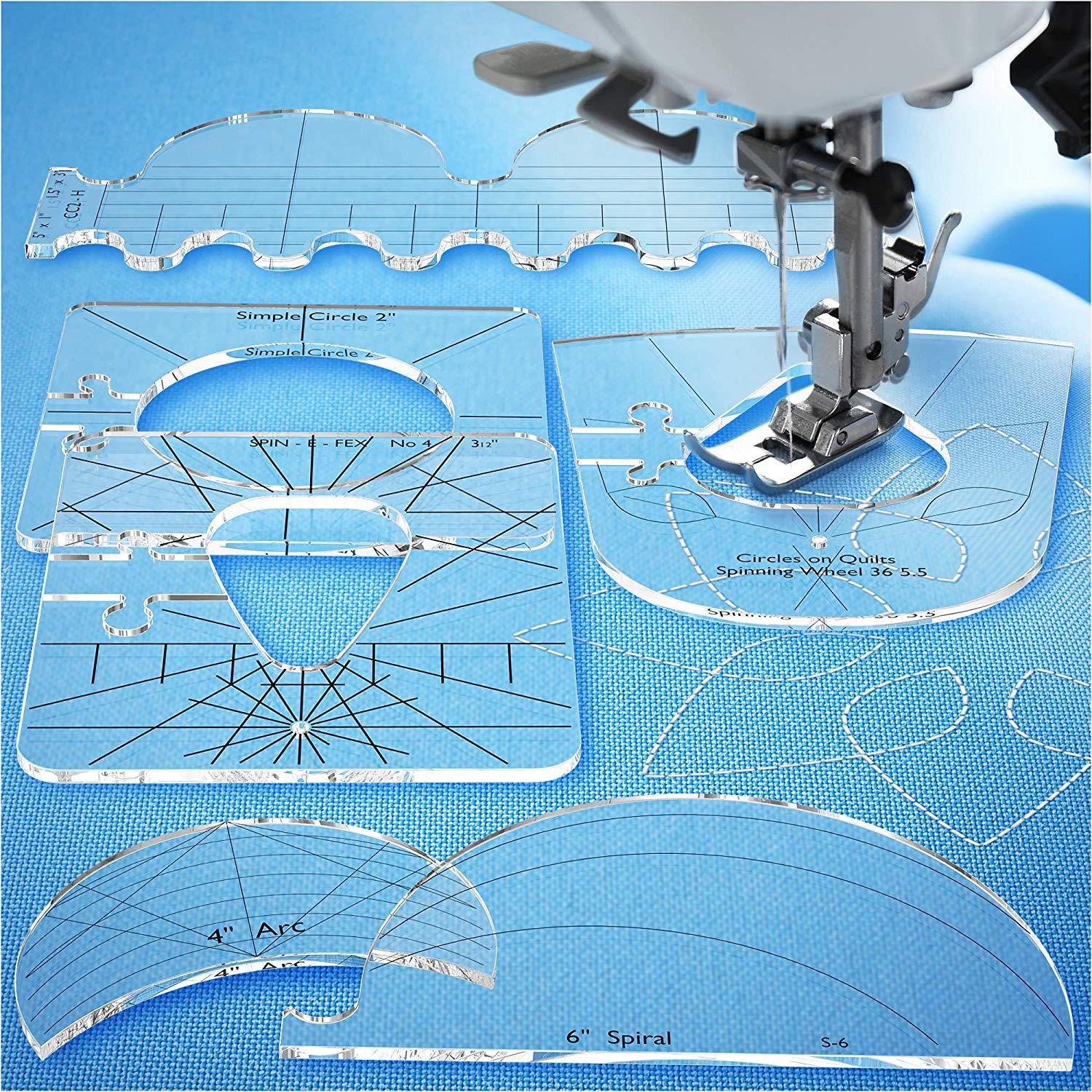 Quilting Template Easy Set includes six clear acrylic templates with alignment markings: