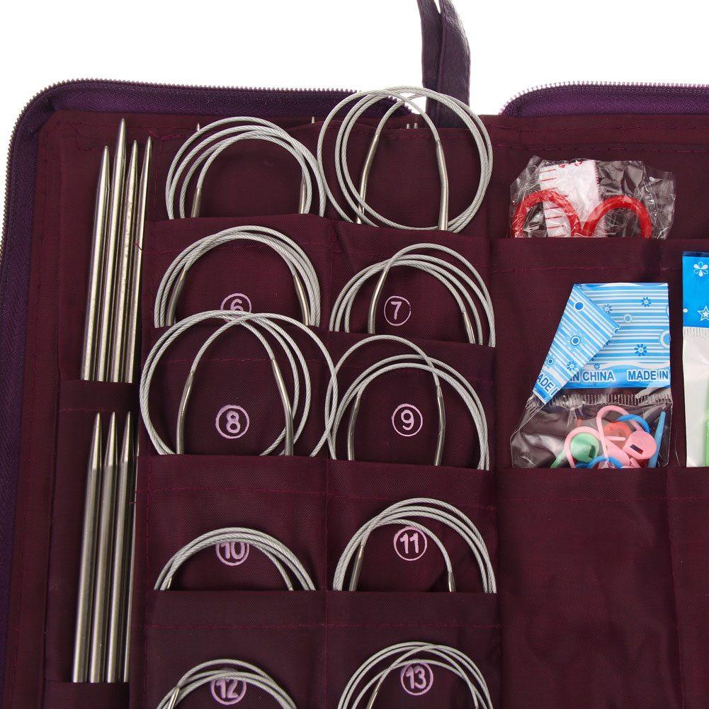 - 104Pcs Stainless Steel Circular Straight Knitting Needles Crochet Hook Weave Set With Bag