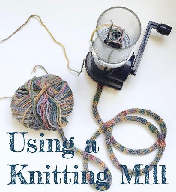 5. Continuse turning the handle slowly until every needle has caught the yarn. Pull down on the yarn coming out or the bottom of the machine every couple turns at the begining to make sure all the stitches has been formed. Soon the yarn will start to come out of the bottom of the tube. Move the clip up as needed.