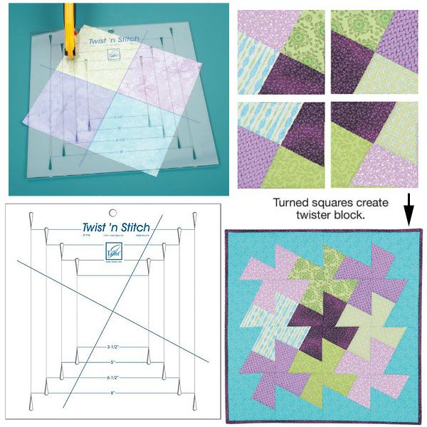 This clear plastic ruler and template creates perfect pinwheel blocks; borders; and quilts from patched squares, Each package contains one Twist Easy Stitch Ruler. Use this ruler to create five different sizes of pinwheel blocks using just one ruler.